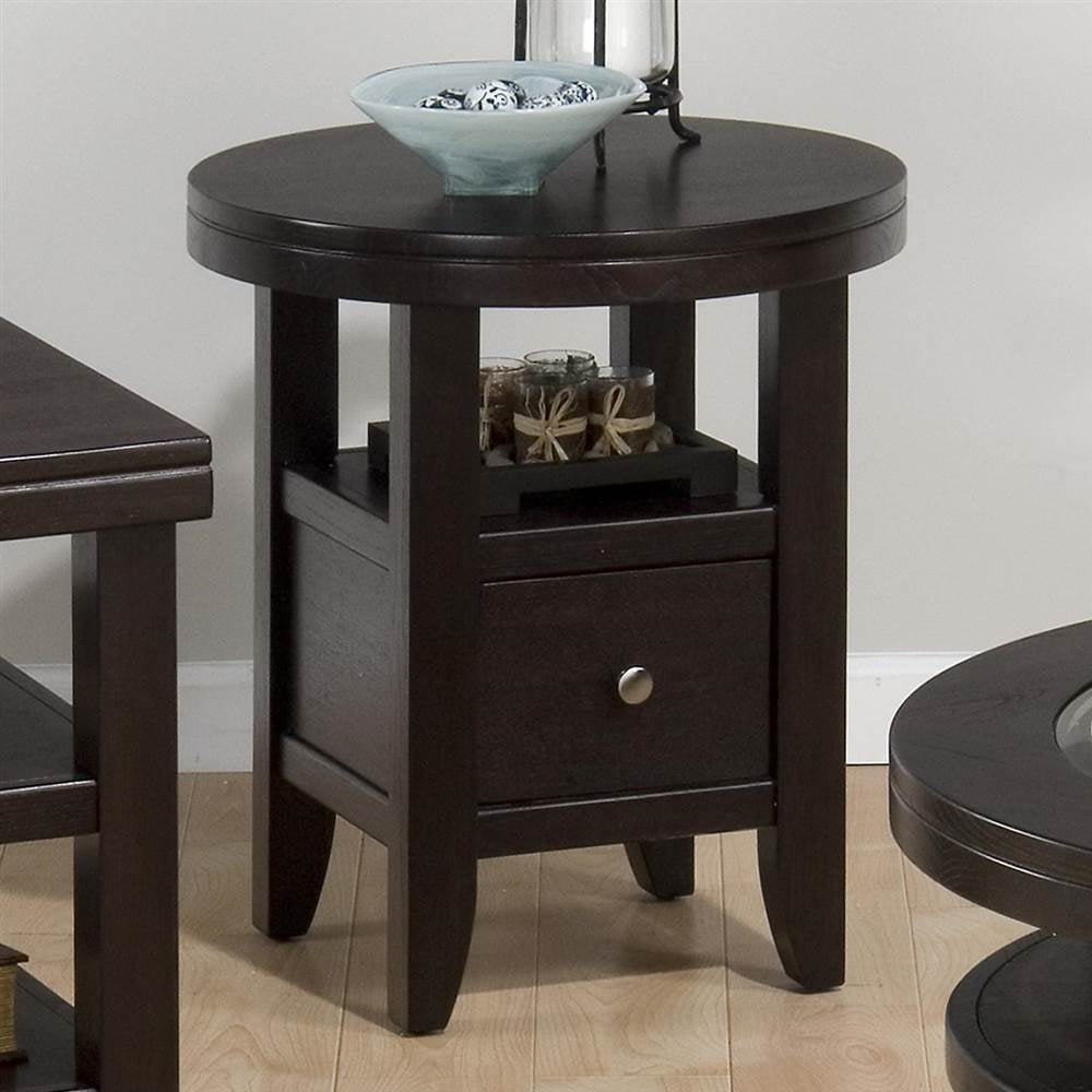 The drawer is ideal for storing remotes, batteries and more, while the lower shelf offers room for magazines, books and coasters. Decor therapy round side table with 1 door and drawer. A modern end table will have a minimal design with geometric shapes in neutral color tones. Which products in end tables are. The oval shape of the leick home oval oak end table in black makes this a practical, space saving piece of furniture.
